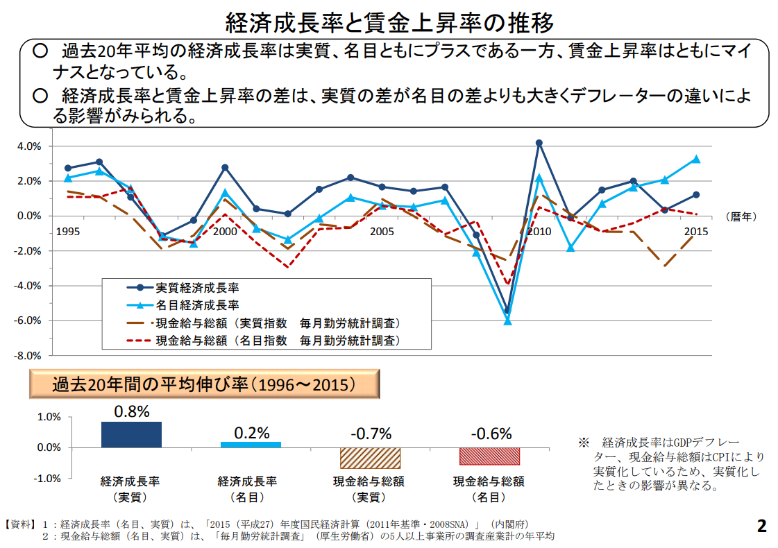 こちらは厚生労働省の近年の経済成長率と賃金上昇率の動向の資料の一部です。